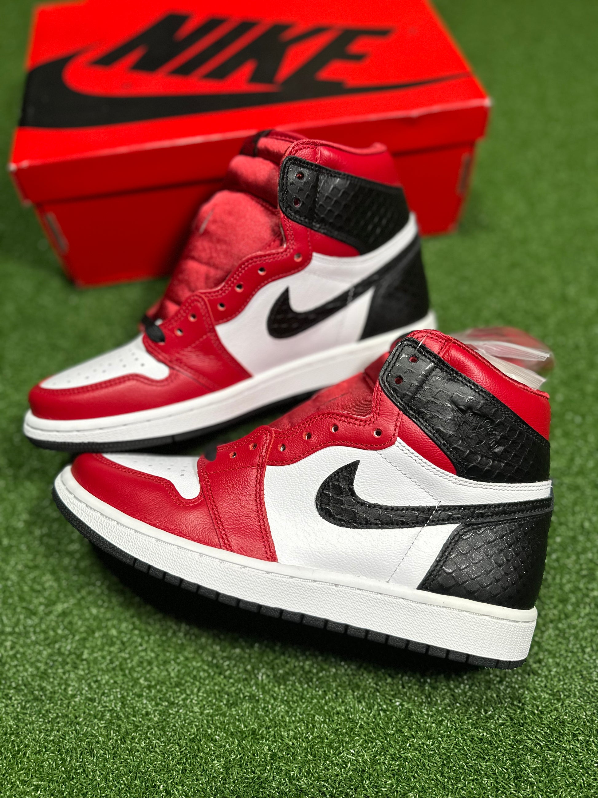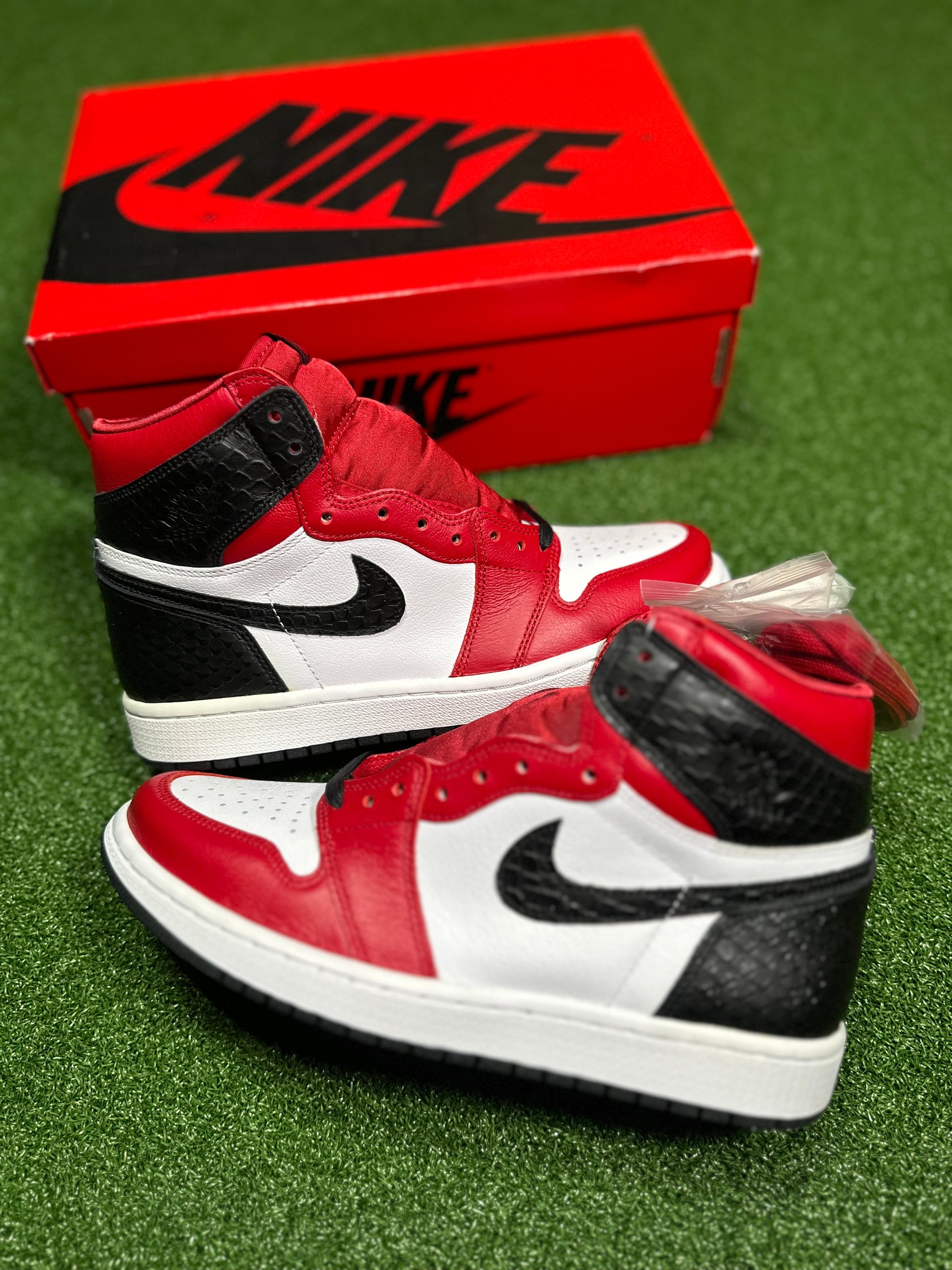 Conoce las Jordan 1 Retro High - Satin Snake Chicago (para mujer), la combinación definitiva de estilo y comodidad. Con una paleta inspirada en Chicago que incluye elementos en rojo y negro, esta secuela del popular lanzamiento "Satin Black Toe" combina texturas de satén y piel de serpiente para lograr un estilo único. Mejora tu estilo deportivo con este par imprescindible.