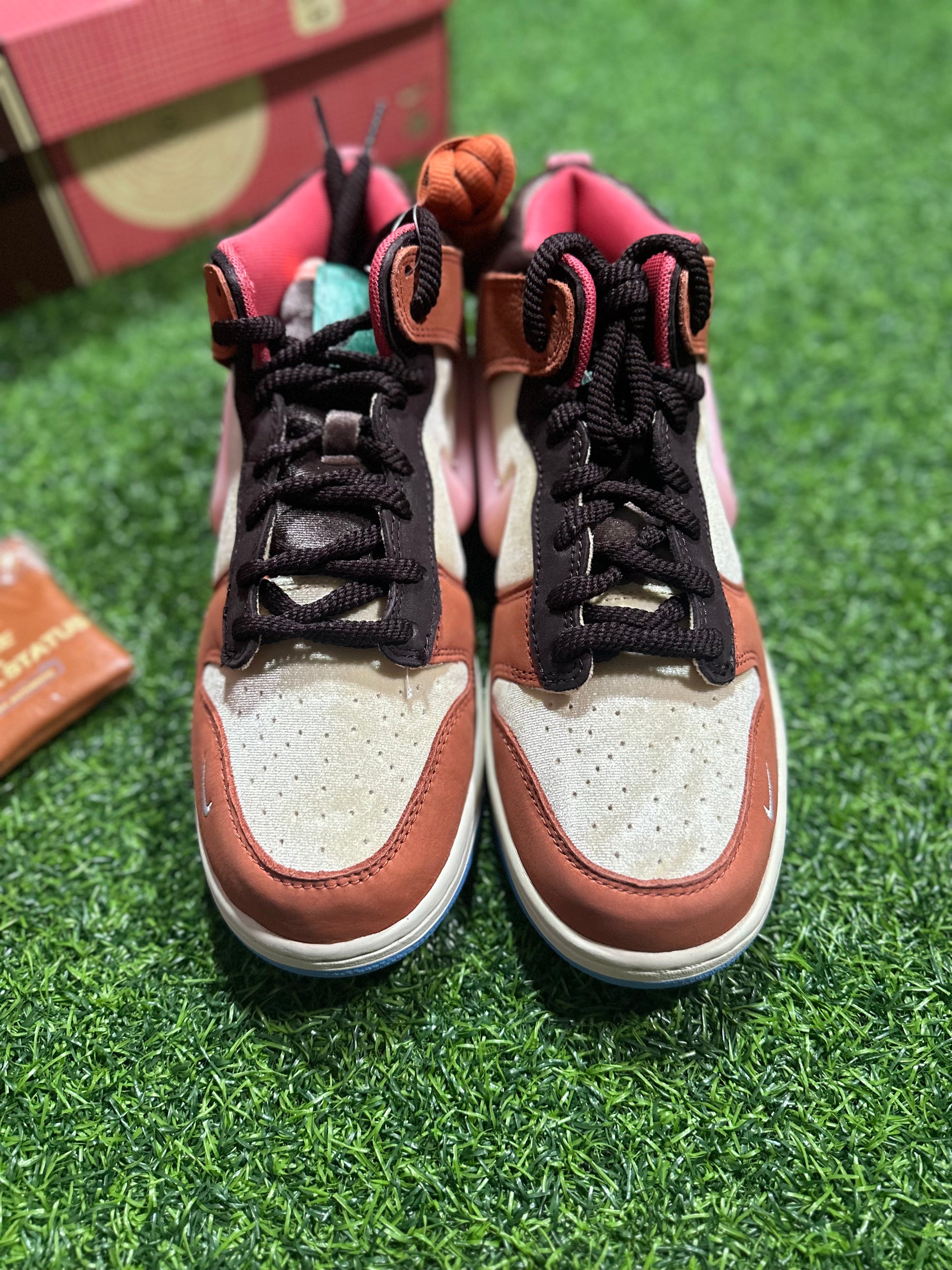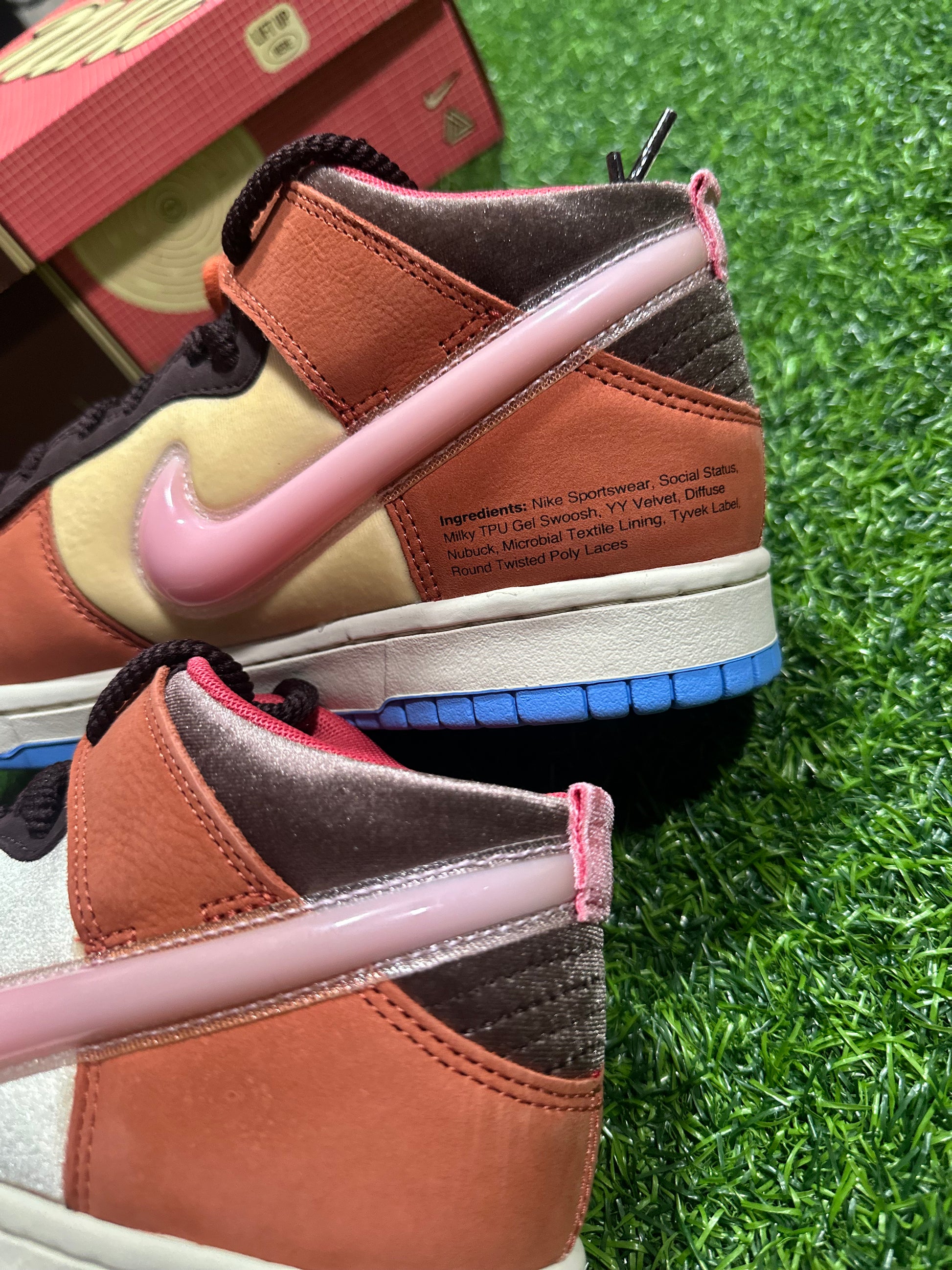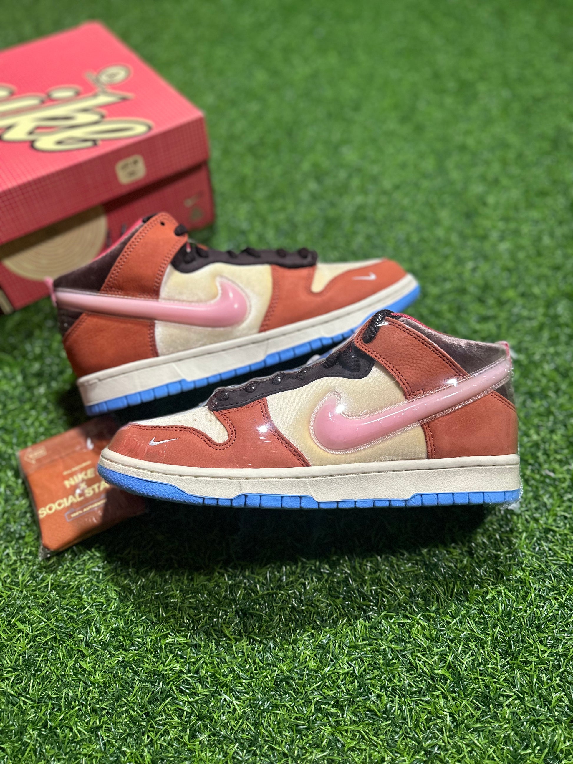 Social Status x Dunk Mid - Chocolate Milk es una colaboración entre dos marcas icónicas que te ofrece un calzado elegante y único. Con su diseño Dunk Mid y su delicioso color chocolate con leche, este calzado sin duda dejará una impresión audaz. Perfecto para personas a la moda que buscan destacarse entre la multitud.