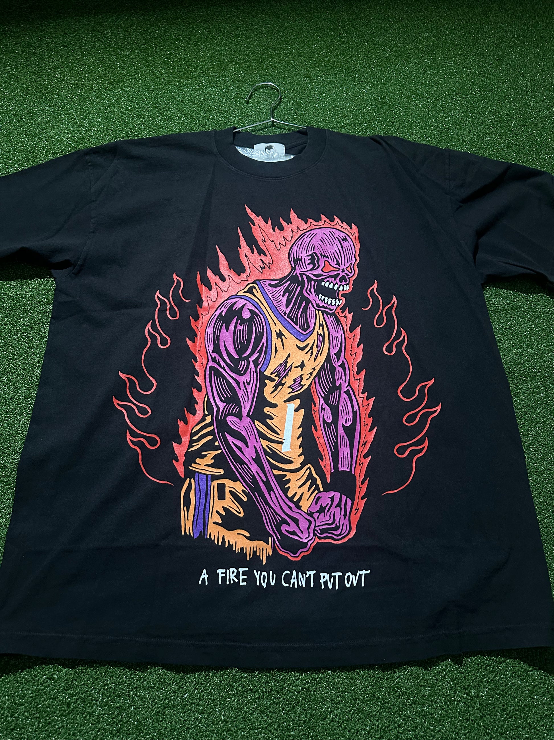 The Warren Lotas “A Fire You Can’t Put Out” Tee embodies the designer’s signature rebellious, underground aesthetic. Known for bold graphics and limited releases, Warren Lotas pieces have become staples for streetwear collectors and hype enthusiasts worldwide.This tee is a perfect example of Warren Lotas’ signature design language, merging streetwear, metal-inspired art, and counterculture vibes. Wear it as a standout piece or keep it as a collectible in your hype rotation.