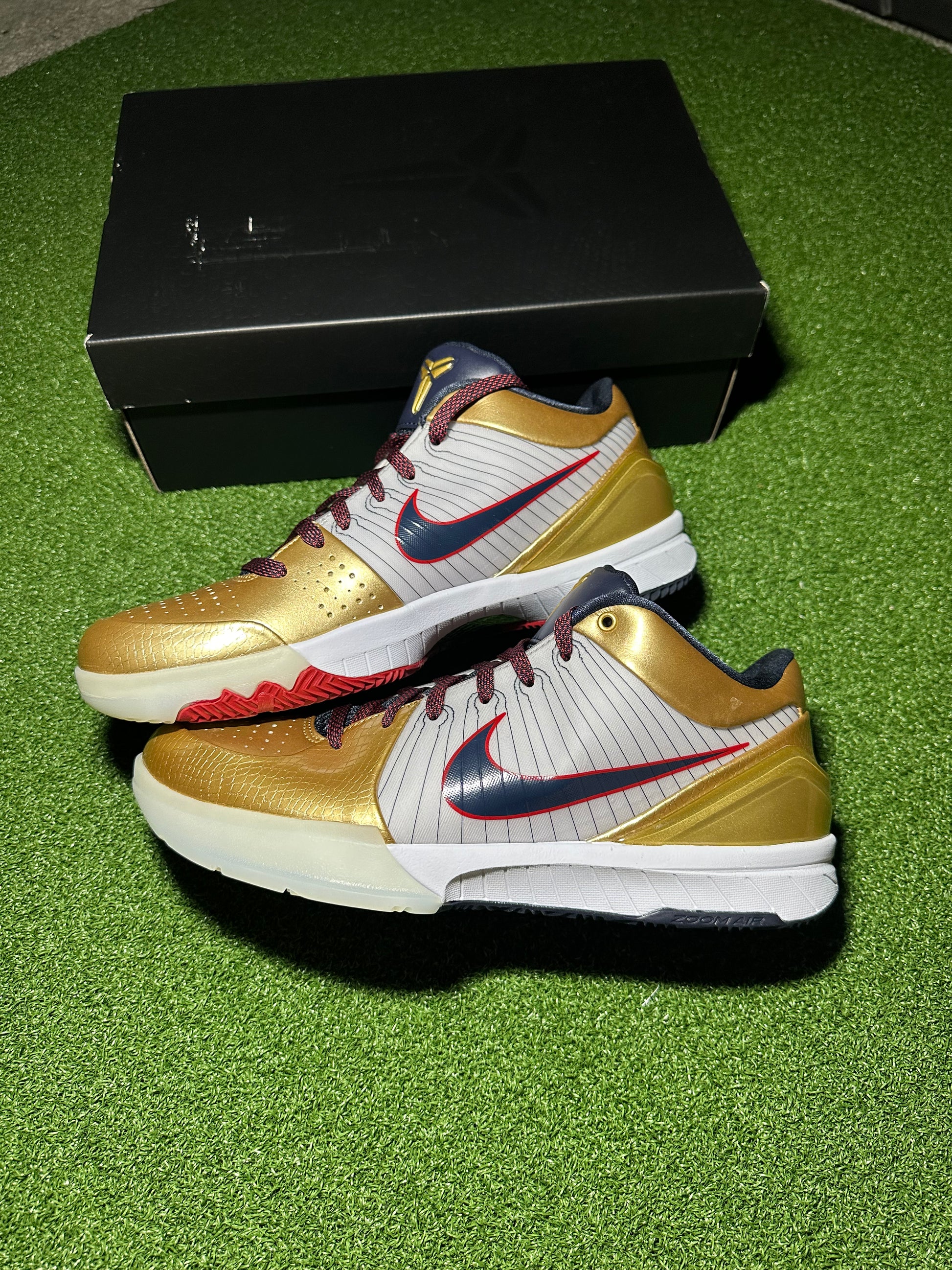 The Nike Kobe 4 Protro “Gold Medal” (2024) celebrates Kobe Bryant’s legendary Olympic performances with a bold, patriotic colorway. Blending on-court performance with cultural heritage, this Protro edition is a must-have for hoopers and collectors. This 2024 release reimagines the classic Kobe 4 with modern Protro performance upgrades, including Zoom Air cushioning and lightweight support. Featuring a clean white leather base, gold overlays, and patriotic accents, the “Gold Medal” pays tribute to Kobe’s dominance on the international stage.